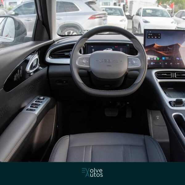 El Geely Geome es un SUV eléctrico compacto con batería de 40 kWh y ~320 km WLTP. Trae pantalla de 14.8”, CarPlay por dongle, cámaras 360/540, Control Crucero Adaptativo (ACC) y maletero de 375 L más frunk. Es cómodo, ágil y muy práctico para la ciudad.